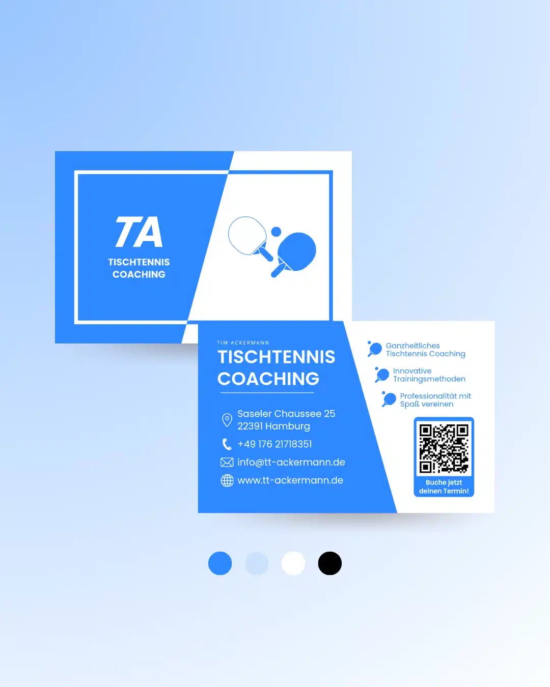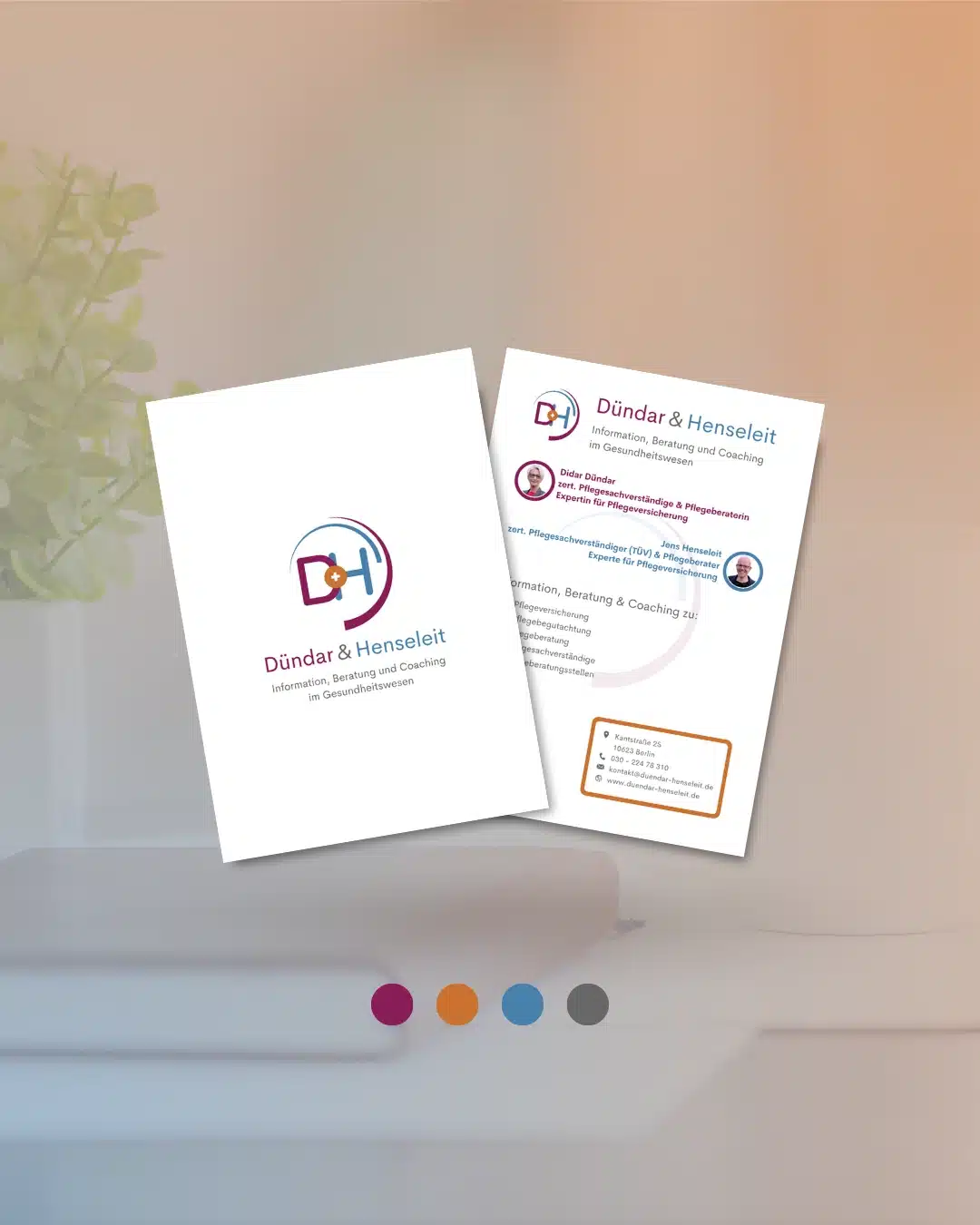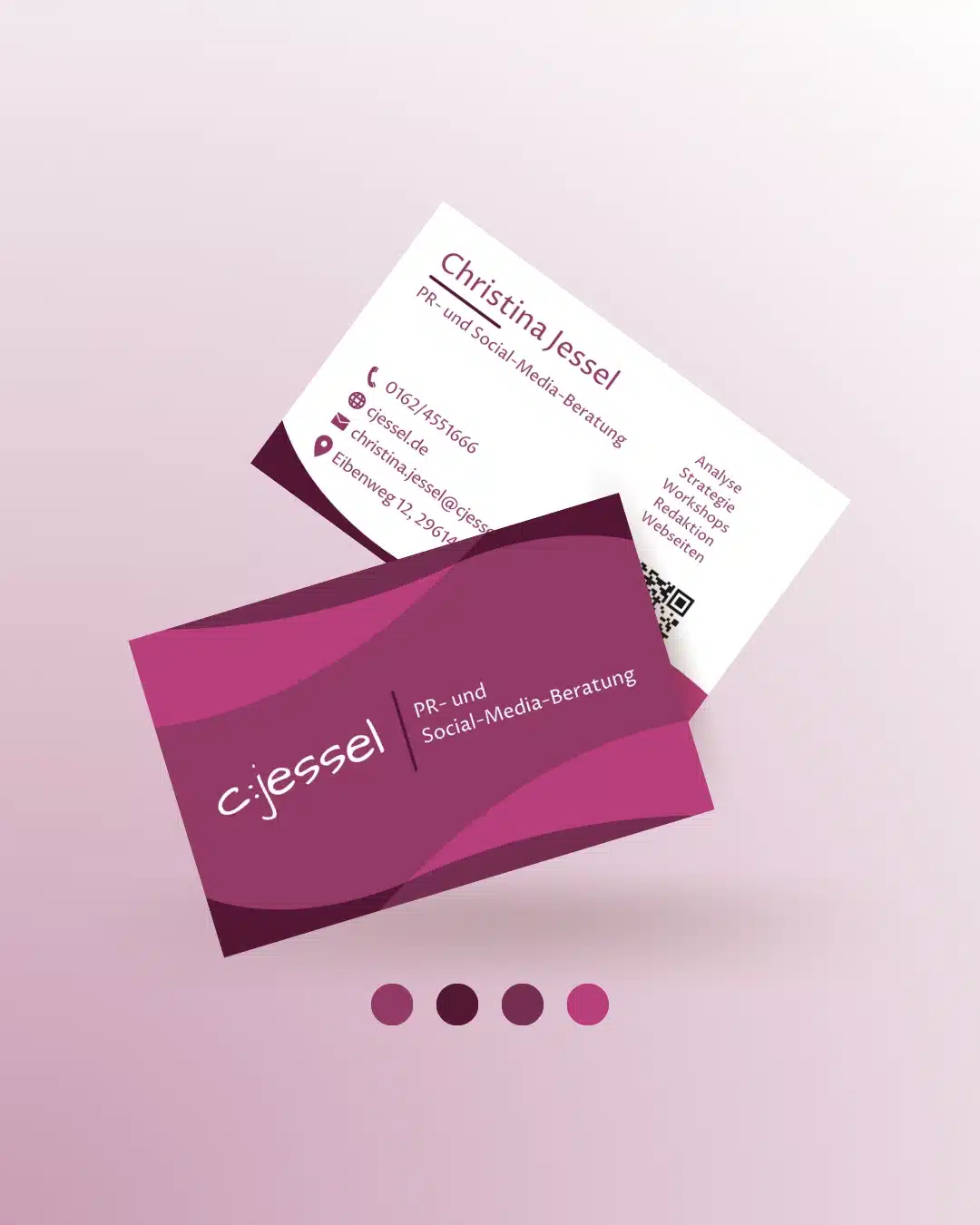 Meine Unterstützung erhielt sie im Bereich Printmedien-Design: Mit ihren neuen Visitenkarten, passend zu Ihren bereits bestehenden Branding-Farben, bleibt Sie bei Ihren zukünftigen Geschäftspartnern und Kunden im Gedächtnis.